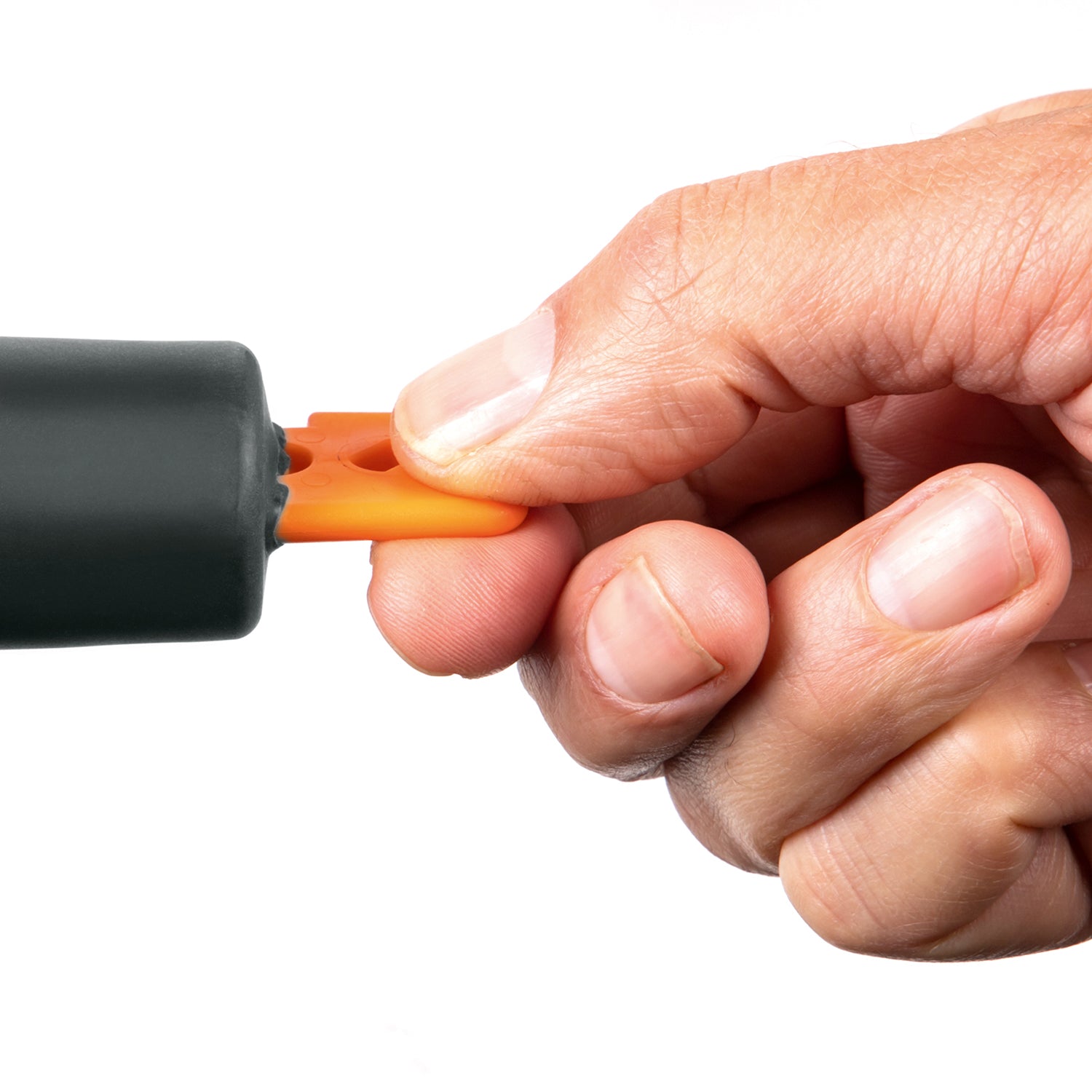 The precision pressure gauge on top, the extra-long hose with the MULTI-VALVE "MV EASY" head, and the soft-touch handle with tire lever slots make the AIRMOTION a top-class floor pump. For use in the workshop or at competitions, it's easy to transport thanks to the grooved grip.